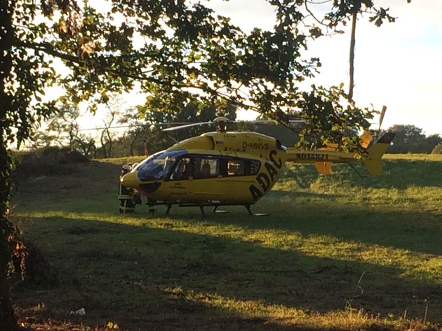 Noch während des laufenden Einsatzes wurde dann ein Verkehrsunfall mit einem Motorrad auf dem Hubbelrather Weg, kurz nach der Eisenbahnüberführung gemeldet. Da sich immer noch alle Rettungswagen und bodengebundene Notärzte im Einsatz befanden, wurde durch die Kreisleitstelle die Besatzung eines zweites Hilfeleistungslöschfahrzeug der hauptamtlichen Wache sowie der Rettungshubschrauber Christoph Rheinland aus Köln alarmiert. Der eigentlich für den Einsatz mit den gestürzten Mountainbiker entsendete Rettungswagen der Berufsfeuerwehr Düsseldorf passierte kurz nach der Alarmmeldung die Einsatzstelle und übernahm sofort die rettungsdienstliche Versorgung des verunglückten Motorradfahrers, der ohne Fremdeinwirkung zu Sturz gekommen war. Für den Einsatz mit den gestürzten Mountainbikern wurde daraufhin ein Rettungswagen der Feuerwehr Ratingen alarmiert. Zur Landesicherung für den Rettungshubschrauber musste noch zusätzlich eine Löschgruppe des Löschzuges Millrath mit einem weiteren Löschfahrzeug alarmiert werden. Der schwer verletzte Motorradfahrer wurde unter Begleitung des Notarztes des Rettungshubschraubers mit dem Rettungswagen zur Uniklinik Düsseldorf transportiert. Nachdem der Rettungshubschrauber wieder gestartet war, konnte der Einsatz der insgesamt 16 Einsatzkräfte nach ca. 75 Minuten beendet werden.
