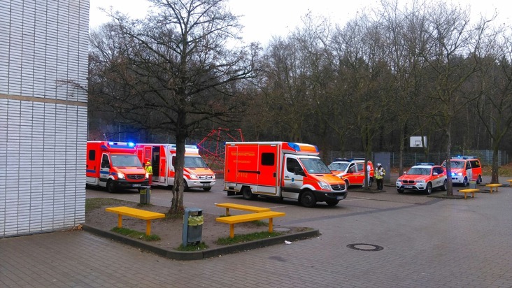 Heute Morgen um 10:27 Uhr wurde die Feuerwehr Erkrath und der Rettungsdienst zur Realschule an der Rankestraße alarmiert. Dort sollten über 20 Schüler aufgrund einer Reizstofffreisetzung betroffen sein und die damit verbundenen typischen Symptome aufweisen.