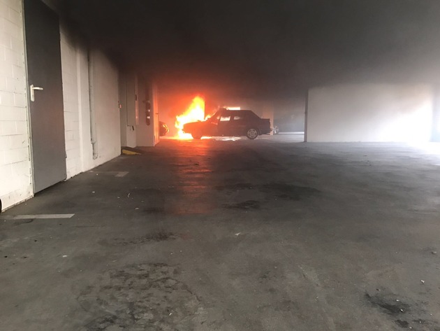 FW-Erkrath: Pkw-Brand in einem Parkhaus