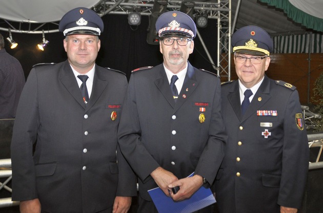 Aber einfach gehen lassen wollte man Jürgen Evers nicht: Für sein langjähriges Engagement in der Jugendfeuerwehr gab es eine ganz besondere Ehrung. Aus den Händen von Kreisjugendfeuerwehrwart Peter Krings und Kreisbrandmeister Paul-Heinz Böhmer erhielt er die Ehrennadel der nordrhein-westfälischen Jugendfeuerwehr in Silber.