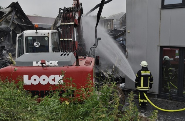 FW-KLE: Abschlussmeldung: Brand eines kunststoffverarbeitenden Betriebs im Gewerbegebiet Bedburg-Hau