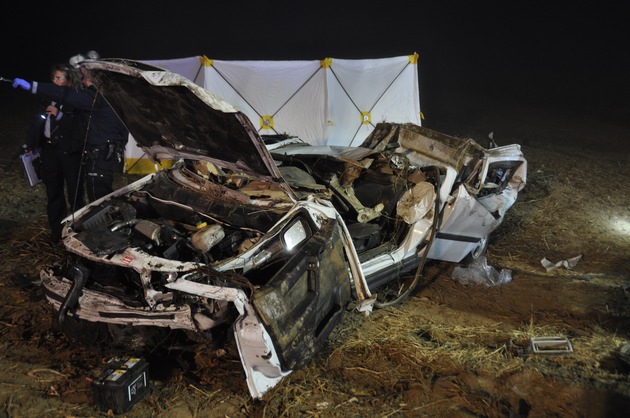 Nach Eintreffen des Rettungsdienstes und der Feuerwehr konnte nur noch der Tod der beiden männlichen Fahrzeuginsassen festgestellt werden. Sie wurden von der Feuerwehr aus dem völlig zerstörten Fahrzeug befreit.