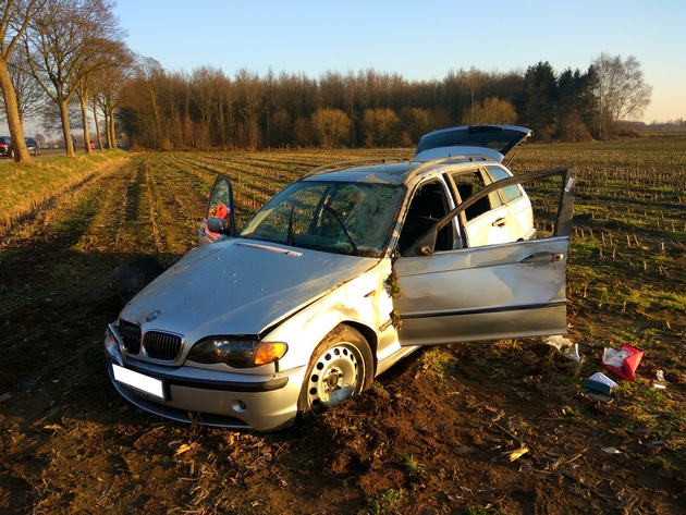 Zu dem Unfall kam es, nachdem der Fahrer aus Fahrtrichtung Kalkar kommend, auf die Gegenfahr kam und gegen einen Straßenbaum prallte. Das Fahrzeug kippte dann in ein angrenzendes Feld und wurde in das Feld geschleudert.