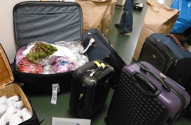 Rund 120 kg der Kaudroge Khat stellten Zöllner am 05.11.2015 bei der Einreisekontrolle am Flughafen Tegel - Berlin sicher. Die Drogen befanden sich gut verpackt in den Koffern von drei Männern, die mit dem Flug QR 081 von Doha/Katar über Berlin nach Deutschland einreisen wollten. Ausgangspunkt der Reise war Addis Abeba/Äthiopien.