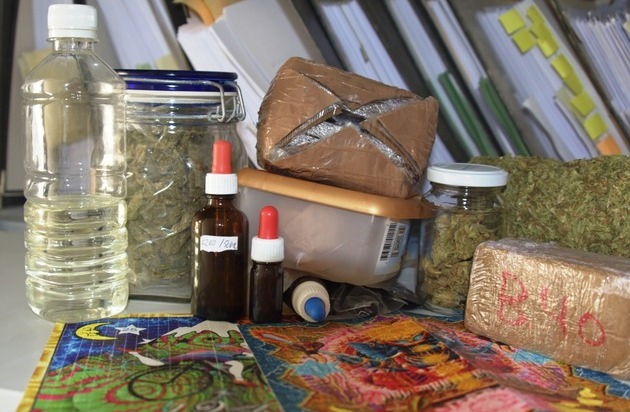 Rund 2 kg Marihuana, 770 g Haschisch, 72 g Kokain, Tabak mit Hanföl versetzt, LSD-Trips sowie diverse noch zu untersuchende Pulver und Flüssigkeiten fanden die Fahnder in der recht unordentlichen Wohnung vor. Einen Teil der Drogen sowie 4.500 Euro in dealertypischer kleiner Stückelung fanden die Beamten auf dem Dach des Wintergartens versteckt.
