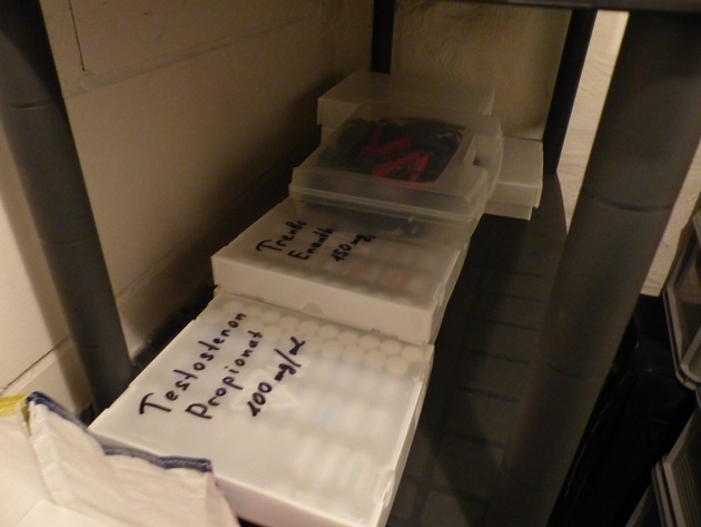 Dort allerdings fiel den Fahndern ein, mit einem teuren Sicherheitsschloss, besonders gesicherter Kellerraum ins Auge. Durch ein Guckloch konnten sie Boxen mit der Aufschrift Testosteron erkennen.
