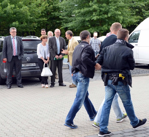 Begrüßt wurde Herr Dr. Meister vom Vizepräsidenten des Zollkriminalamts, Werner Turek, und vom Zollfahndungsamtsleiter Markus Tönsgerlemann.