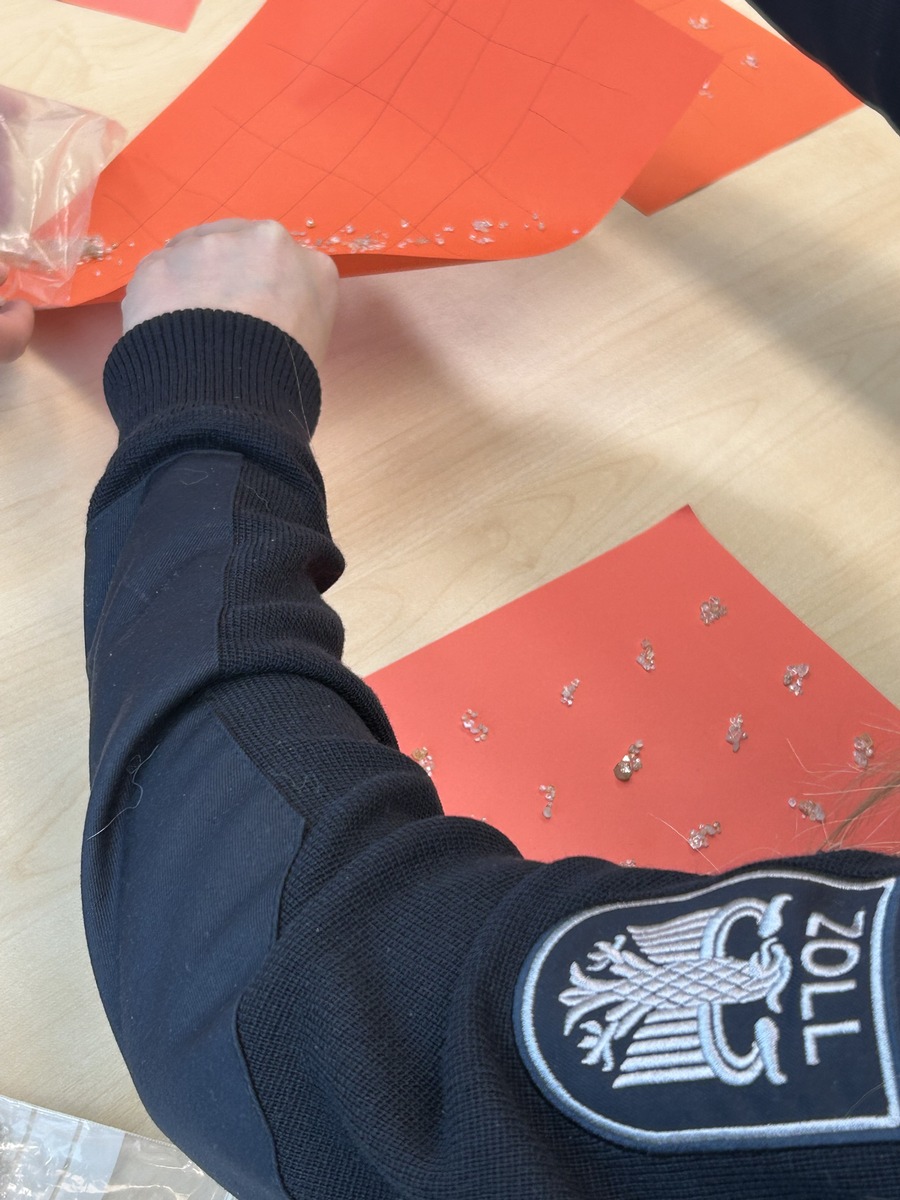Die hinzugerufenen Fahnderinnen und Fahnder des Zollfahndungsamts Frankfurt am Main übernahmen die Ermittlungen im Auftrag der Staatsanwaltschaft Frankfurt am Main und nahmen den 53-jährigen Mann fest. Die Einsatzkräfte stellten die Rohdiamanten sicher und zählten diese händisch.