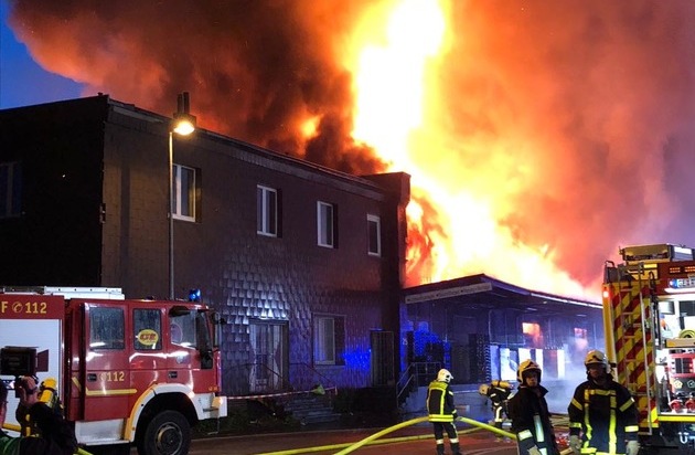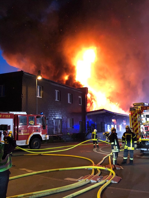 Um 02.50 Uhr in der heutigen Nacht wurde die Feuerwehr Gelsenkirchen zu einem Brand im ehemaligen Güterbahnhof gerufen. Bei Eintreffen der ersten Einheiten brannte bereits ein großer Teil der ca. 150 Meter langen Halle. Durch die Deutsche Bahn wurden die hinter dem Objekt liegenden Bahnlinien stromlos geschaltet. Zeitgleich wurden im großen Umfang Strahlrohre und 3 Drehleitern eingesetzt. Da die gesamte Halle einsturzgefährdet ist, wird derzeit über die Drehleitern massiv Schaum zur Brandbekämpfung eingesetzt. Gegen 10.40 Uhr konnte die Warnung der Bevölkerung über NINA und Rundfunk zurückgenommen werden. Messungen wurden fortlaufend im betroffenen Bereich durch die Feuerwehr Gelsenkirchen durchgeführt. Derzeit finden Nachlöscharbeiten mit Unterstützung des Technischen Hilfswerk im Bereich der Dachkonstruktion statt. Ein Ende der Einsatzmaßnahmen ist zu derzeitigem Zeitpunkt noch nicht absehbar.