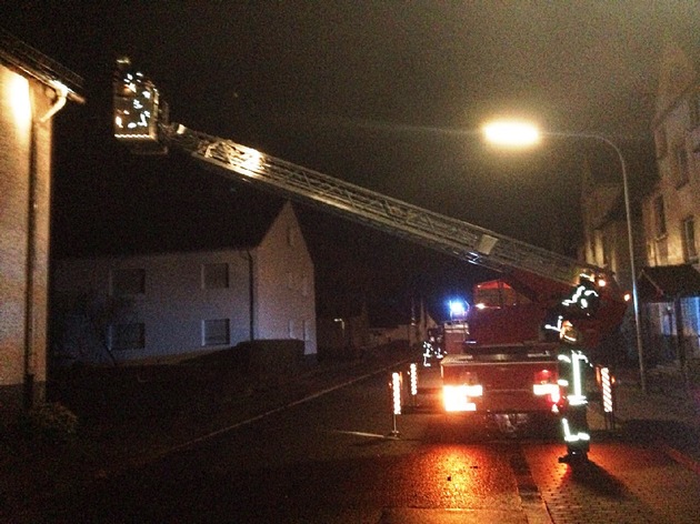Die Wache aus Arnsberg musste in Gierskämpen einen umgestürzten Baum beseitigen, die Löschgruppe Holzen musste an der Kreuzung Oelinghauser Heide einen Baum von der Straße entfernen und die Einheiten aus Hüsten, Bruchhausen und Neheim wurden zu einer Einsatzstelle in die Delecker Straße alarmiert. Hier hatte ein Anwohner eine Rauchentwicklung nach einem Blitzeinschlag bemerkt und die Feuerwehr verständigt. Nach einer gründlichen Erkundung konnte eine Straße weiter, in der Breddestraße, ein Haus ausfindig gemacht werden, von dem mehrere Dachziegel auf die Straße gestürzt waren. Zum Glück gab es hier, wie auch an den anderen Einsatzstellen keine verletzten Personen, und es blieb bei Sachschäden.