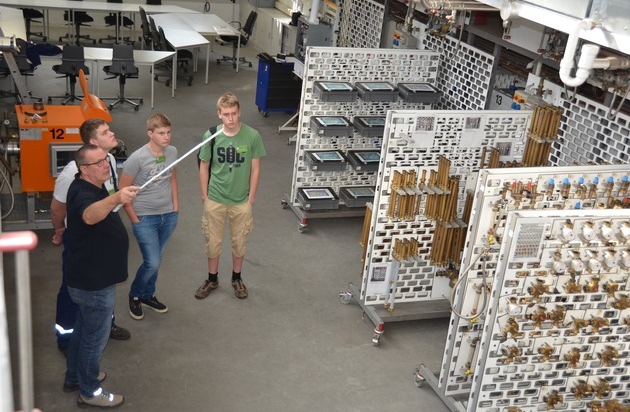 Hier lernten sie moderne Heizungstechnik hautnah kennen und drehten unter Anleitung von Dozent Olaf Schaale selbst die Stellschrauben, um einen hydraulischen Abgleich vorzunehmen. Schaale verstand es ebenso wie Gas- und Wasserinstallateurmeister Martin Känzler, selbst aktiver Feuerwehrmann, immer wieder, die Verbindung zwischen Handwerk und Feuerwehr herzustellen. Doch nicht nur darauf kam es an, wichtiges Anliegen war es, die vielfältigen Möglichkeiten, die das Handwerk bietet, vorzustellen. Und dazu sind praktische Erfahrungen und Einblicke in den Berufsalltag eine ideale Verbindung, mit der sich die Weichen für die berufliche Zukunft leichter stellen lassen.