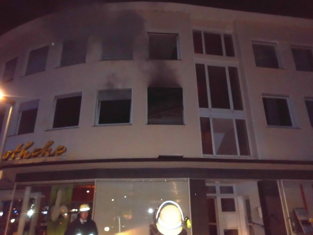 Beim Eintreffen der ersten Einsatzkräfte drang dunkler Rauch durch Fenster im Obergeschoss des Wohn- und Geschäftshauses nach draußen. Die Bewohner der benachbarten Wohnungen hatten zu diesem Zeitpunkt bereits das Gebäude verlassen, hatten sich hierbei allerdings eine Rauchgasvergiftung zugezogen. Alle Bewohner wurden umgehend vom Rettungsdienst versorgt und betreut.
