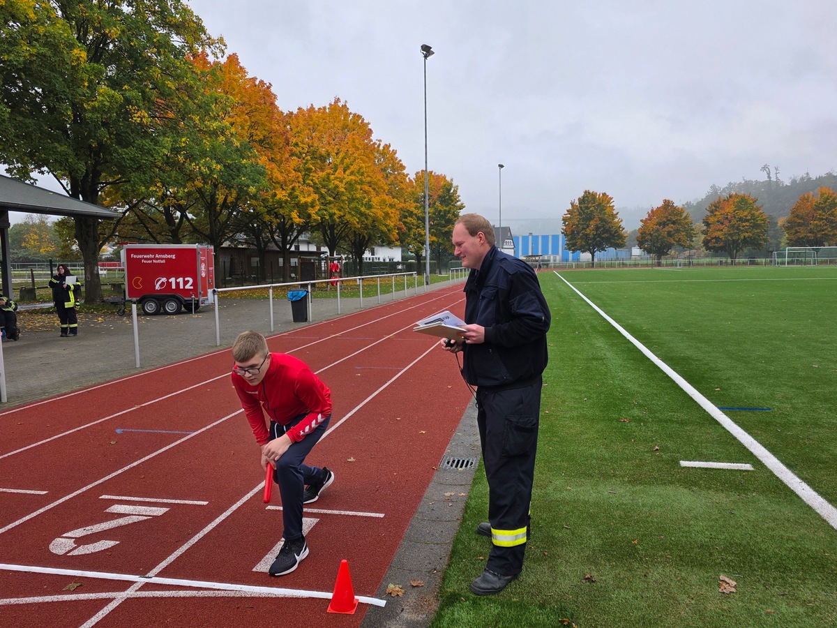 Unterstützt und bewertet wurden die Jugendlichen von den Ausbilderinnen und Ausbildern der Jugendfeuerwehr. Auch der stellvertretende Wehrführer Kai Spiegel sowie Vertreter der Jugendfeuerwehr des Hochsauerlandkreises begleiteten die Abnahme und überzeugten sich von der hohen Leistungsbereitschaft der Nachwuchskräfte.