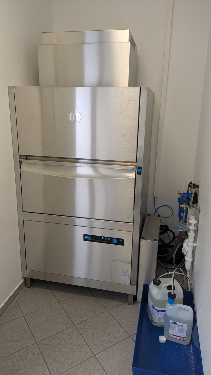Um den Gesundheitsschutz der Mitarbeiterinnen und Mitarbeiter zu erhöhen und die Arbeitsabläufe weiter zu optimieren, wurde durch die Abteilung Technik nun eine neue Vorreinigungsmaschine vom Typ "Meiko TopClean D" angeschafft und in Betrieb genommen.