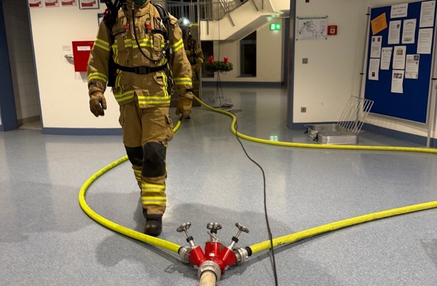 Attendorn. Zu einem Brandeinsatz in einer Schule wurde der Löschzug Attendorn am gestrigen Abend um 19:15 Uhr alarmiert. Beim Eintreffen der ersten Kräfte waren weite Teile eines Verwaltungstraktes stark verraucht. Brandschutztüren verhinderten dabei die weitere Ausbreitung von Feuer und Rauch. Reinigungskräfte war4en auf das Feuer aufmerksam geworden. Als Ursache wurden brennende Einrichtungsgegenstände in einem Lehrerzimmer lokalisiert. Zur Brandbekämpfung setzte die Feuerwehr insgesamt 8 Einsatzkräfte unter Atemschutz ein und führte neben der eigentlichen Brandbekämpfung umfangreiche Lüftungsmaßnahmen durch. Ein Löschfahrzeug des Löschzugs Ennest, welches sich auf einer Ausbildungsfahrt befand, unterstützte die alarmierten Einsatzkräfte aus Attendorn, die mit acht Fahrzeugen und 39 Einsatzkräften vor Ort waren. Ebenfalls vor Ort waren jeweils mit einem RTW der Rettungsdienst des Kreises Olpe und das DRK, die Polizei, die Kriminalpolizei sowie Vertreter der Medien. Der Einsatz endete mit einer Brandnachschau für die letzten Einsatzkräfte um 00:10 Uhr.