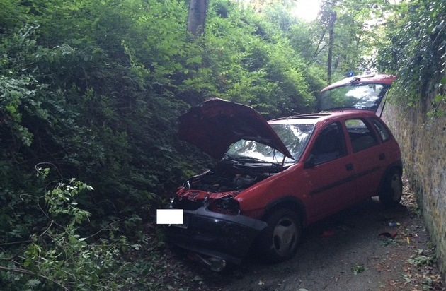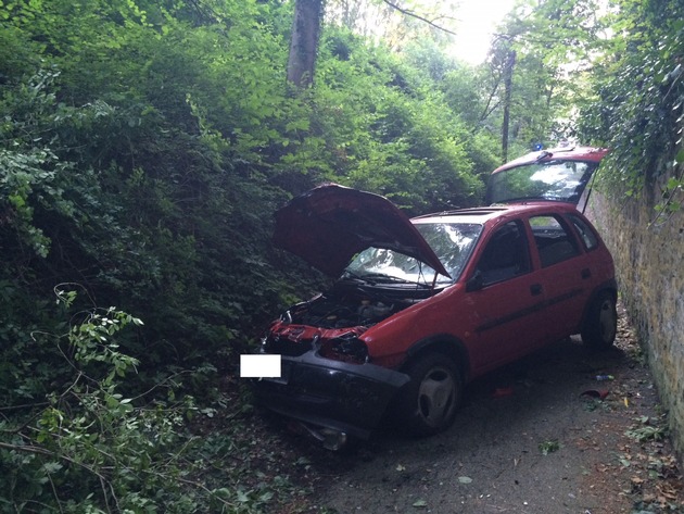 Am Dienstagabend ist ein mit vier Personen besetzter Opel Corsa eine Böschung rund fünf Meter hinunter gestürzt und gegen eine Begrenzungsmauer geprallt. Vier Personen wurden dabei leicht bis mittelschwer verletzt. Die Feuerwehr Stolberg wurde gegen 20.17 Uhr auf die Aachener Straße in Höhe Burgstüttgen gerufen. Gemeldet wurde der Feuerwehr per Notruf, dass ein mit mehreren Personen besetzter PKW von der Aachener Straße einen Abhang hinunter gestürzt sei und brennen würde. Aufgrund des Notrufes wurden sofort der Rüstzug der Feuer- und Rettungswache, der 2. Löschzug und die zu der Zeit auf der Feuerwache befindlichen Löschgruppen Vicht und Zweifall sowie vier Rettungswagen und ein Notarzt alarmiert. Nach wenigen Minuten trafen bereits die ersten Einsatzkräfte an der Unfallstelle ein. Der PKW war von der Aachener Straße eine Böschung hinunter gestürzt und stand auf dem Verbindungsweg zur Finkensiefstraße. Die vier Insassen hatten sich schon aus dem Wagen befreit. Ein freiwilliger Feuerwehrmann und sein Arbeitskollege, die bei der Firma Dalli-Werke arbeiteten, hatten die Unfallgeräusche vernommen und waren zur Unfallstelle geeilt. Vor Eintreffen der Feuerwehr hatten sie bereits mit den Erste-Hilfe-Maßnahmen begonnen. Alle vier Verletzten wurden vom Rettungsdienst medizinisch versorgt und mit Rettungswagen in umliegende Krankenhäuser transportiert. Die Feuerwehr sicherte die Unfallstelle und klemmte die Batterie vom Unfallwagen ab. Die Aachener Straße war für die Zeit der Rettungs- und Bergungsmaßnahmen gesperrt.