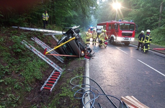 Zu einem schweren Verkehrsunfall wurden am frühen Freitagmorgen gegen 6.12 Uhr die Einsatzkräfte der Feuerwehr Stolberg und Roetgen auf die Mulartshütter Straße zwischen Venwegen und Mulartshütte alarmiert. Auf der Landesstraße (L 12) war eine 40-jährige Autofahrerin in einer Kurve ins Schleudern geraten, von der Fahrbahn abgekommen und im Straßengraben mit Ihrem Wagen auf die Seite umgekippt. Da sich der Unfall laut Notruf zwischen beiden Ortsteilen ereignet haben sollte und die Fahrerin in ihrem Fahrzeug eingeklemmt sei, wurden der Rüstzug der Feuer- und Rettungswache Stolberg, der 3. Löschzug (Löschgruppen Breinig, Dorff und Venwegen), die Löschgruppe Zweifall, Rettungswagen und Notarzt sowie der Löschzug Rott zur Unfallstelle alarmiert. Beim Eintreffen der ersten Rettungskräfte befand sich die Fahrerin noch in ihrem Fahrzeug, war aber nicht eingeklemmt. Bei der Patientin befanden sich ein Rettungssanitäter und ein Arzt, die als Ersthelfer tätig wurden. Da sich der Wagen im Straßengraben auf der Seite liegend befand, wurde das Auto gegen ein weiteres Umkippen mit technischem Gerät gesichert. Aufgrund der Verletzungen der Frau entschieden sich die Einsatzkräfte für eine patientenschonende Rettung aus dem Wagen. Nach einer ersten notärztlichen Behandlung wurde die Patientin mit einem Rettungswagen in ein Krankenhaus gebracht. Die Zusammenarbeit der beiden Feuerwehren kann als vorbildlich bezeichnet werden. Kräfte beider Feuerwehren arbeiteten Hand in Hand zusammen. Bereits seit Jahren besteht zwischen der Roetgener und Stolberger Feuerwehr eine enge Verbundenheit. Jährlich üben sie die gemeinsame Zusammenarbeit für solche Einsätze bei Großübungen.