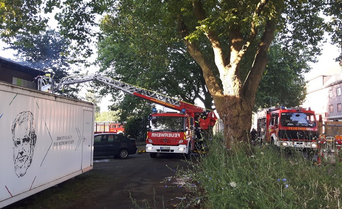 FW Dinslaken: Großbrand in Dinslaken - Nachlöscharbeiten im Kreativquartier