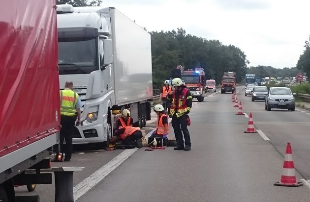 Gleich zwei Einsätze beschäftigte heute vormittag die Feuerwehr Dinslaken. Gegen 09:30 Uhr wurden die Feuerwehreinsatzkräfte zu einem Unfall auf der BAB 3 alarmiert. Ein LKW hatte sich den Kraftstofftank an einem auf der Fahrbahn liegenden Metallteil aufgerissen. Ca. 400 Liter Dieselkraftstoff sind ausgelaufen. Die Feuerwehr dichtete das Leck ab. Der ausgelaufende Kraftstoff wurde mit Bindemittel abgestreut. Für den Zeitraum der technischen Hilfeleistung wurde die rechte Fahrspur gesperrt. Vor Ort waren die Einheiten Hauptwache und Hiesfeld unterstützt durch die Autobahnpolizei und die Autobahnmeisterei.
