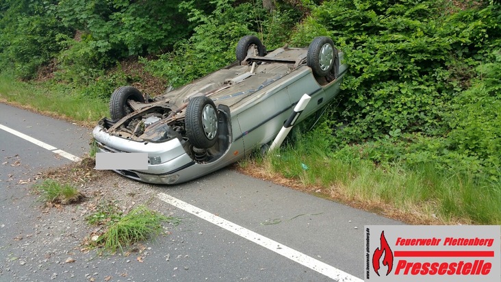 Zu einem Verkehrsunfall auf der Bundesstraße 236 kurz vor Pasel, rückten am heutigen Mittwochmittag gegen 12:30 Uhr Rettungskräfte von Plettenberger Feuerwehr und Polizei aus. Eine PKW-Fahrerin hatte bei ihrer Fahrt von Plettenberg in Fahrtrichtung Finnentrop, kurz vor der Ortslage Pasel, aus noch nicht geklärter Ursache die Kontrolle über ihr Fahrzeug verloren und sich anschließend nach einer Kollision mit einer Uferböschung überschlagen. Das Fahrzeug kam dabei auf dem Dach liegend zum Stehen. Die Fahrerin war bei Ankunft der Feuerwehr am Unfallort bereits aus ihrem Fahrzeug befreit und wurde nach rettungsdienstlicher Erstversorgung zum Ausschluss schwererer Verletzungen per Rettungswagen dem Plettenberg Krankenhaus zugeführt. Während der Rettungs- und Bergungsarbeiten durch Feuerwehr und Abschleppunternehmen sowie zur Unfallaufnahme durch die Polizei wurde die Bundesstraße kurzzeitig voll gesperrt. Zur genauen Unfallursache sowie zur Höhe des entstandenen Sachschadens kann die Feuerwehr keine Auskunft erteilen.