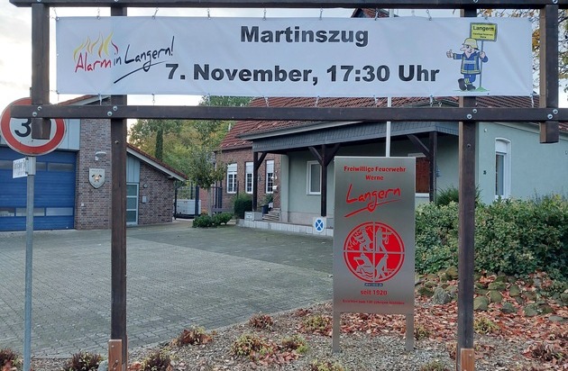 Die Löschgruppe Langern der Freiwilligen Feuerwehr Werne richtet in diesem Jahr wieder den traditionellen Martinszug durch Langern aus. Treffpunkt dafür ist am Freitag, 7. November 2025, um 17:30 Uhr vor dem Dorfgemeinschaftshaus an der Langernstraße 35. Dort formiert sich der Zug und führt, abgesichert von der Feuerwehr, über die Langernstraße, die Straßen Am Sunderbach und Osticker Berg wieder zum Dorfgemeinschaftshaus. Für die passende musikalische Begleitung sorgt der Langerner Gesangsverein "Zur Linde". Nach dem Umzug bietet die Löschgruppe bei Bratwurst und Getränken Gelegenheit, den Abend in schöner Atmosphäre am Dorfgemeinschaftshaus ausklingen zu lassen. Auf die Kinder wartet dann eine süße Überraschung.