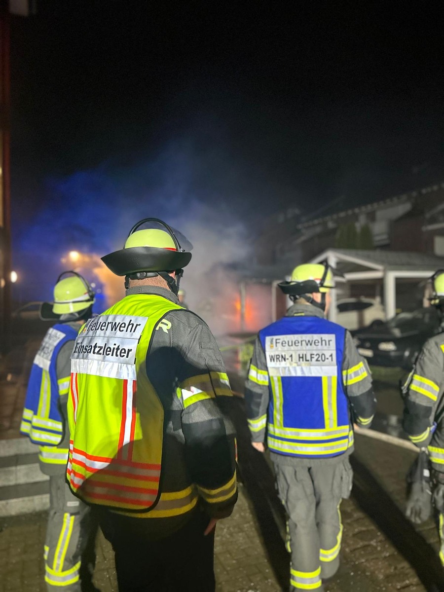 FW-WRN: Ausgedehnter Carportbrand in der Mozartstraße