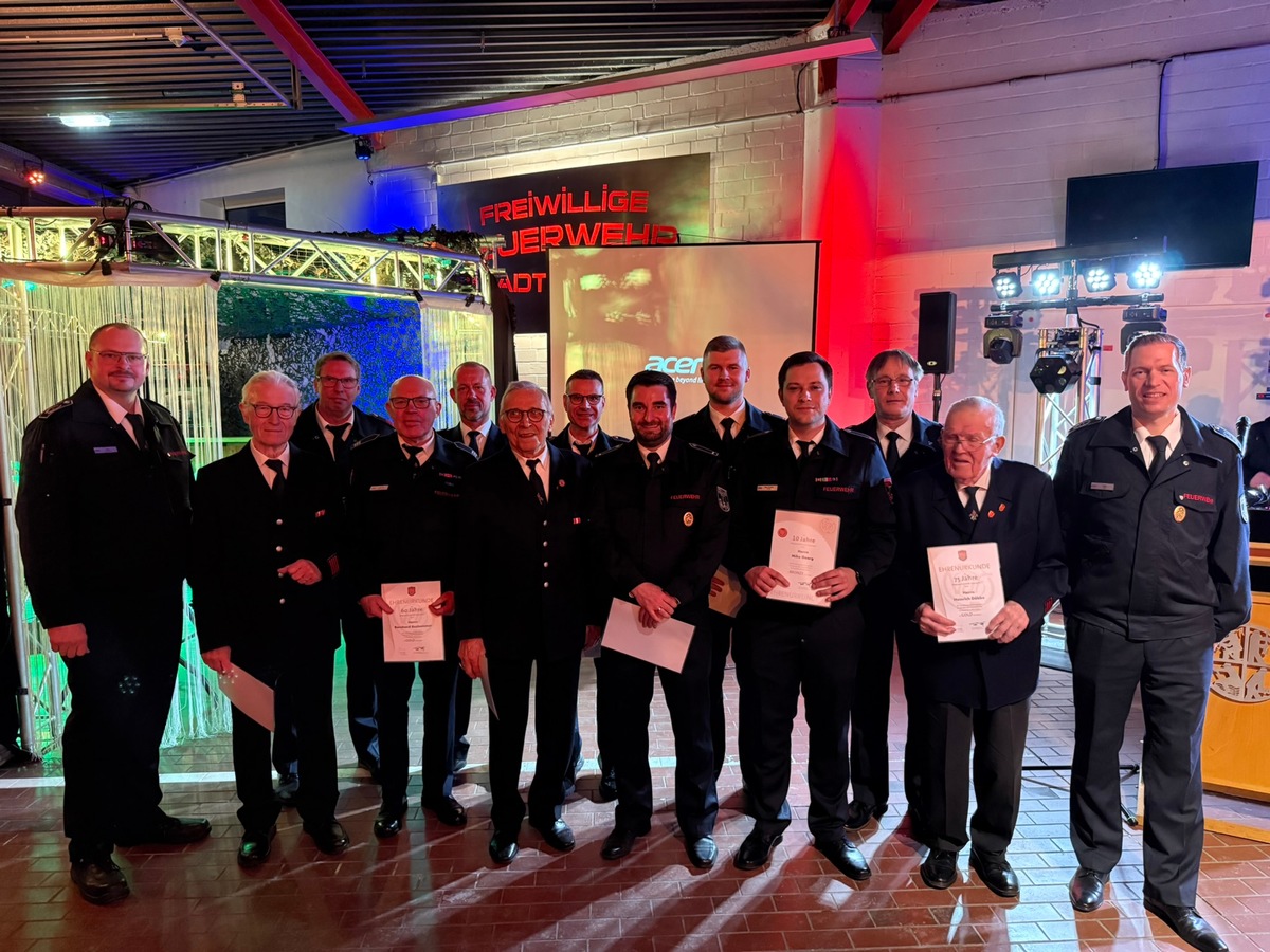 Die Sonderauszeichnung des Verbandes der Feuerwehren für 10 Jahre Mitgliedschaft erhielten Mike Georg, Jonas Hoselmann, Marcel Kaleta und Mark Seeland. Mit dem Feuerwehr-Ehrenzeichen in Silber für 25 Jahre Mitgliedschaft wurden Dr. Bodo Bernsdorf, Michael Freundschuh und Tobias Tenk ausgezeichnet. Das Feuerwehr-Ehrenzeichen in Gold für 35 Jahre Mitgliedschaft erhielten Ronald Conradi, Harald Ernst, Michael Gillmann, Andreas Schilla und Frank Zurstraßen.