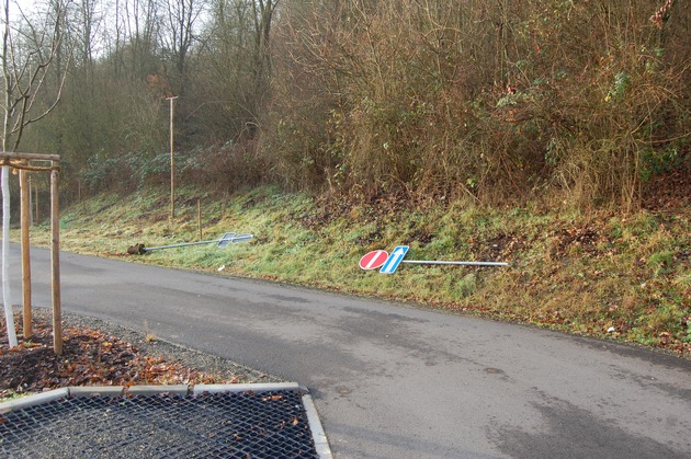 Der Tatverdächtige hat insgesamt zwei Verkehrsschilder samt Betonsockel rausgehebelt und einen weiteren Pfosten mit Schild abgebrochen. Die Höhe des Sachschadens lässt sich derzeit noch nicht beziffern. Wegen Sachbeschädigung hat die Polizei ein Ermittlungsverfahren eingeleitet.