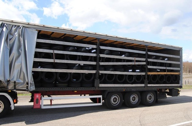 Spezialisten der Autobahnpolizei Kaiserslautern haben am Donnerstag auf dem Parkplatz "Schweinsdell" einen Sattelzug kontrolliert. Dieser fiel den Beamten wegen der ausgebeulten Plane auf. Der Sattelzug war mit Reifen beladen, die sich während der Fahrt verschoben hatten und gegen die Plane drückten. Dadurch brachen mehrere Spriegel, die eigentlich der Ladungssicherung dienen. Der Fahrer konnte seine Fahrt erst fortsetzen nachdem die Reifen umgeladen waren. Hierzu musste ein weiteres Fahrzeug zur Umladestelle beordert werden. Fahrer und Halter müssen mit einem Bußgeldverfahren rechnen. Daneben wird auch ein Gewinnabschöpfungsverfahren geprüft.