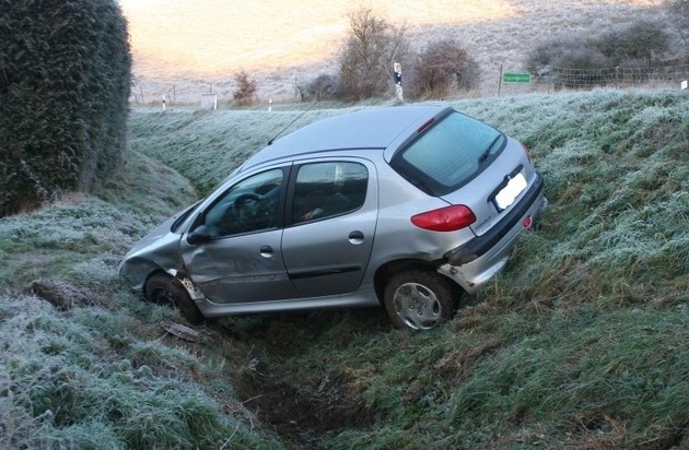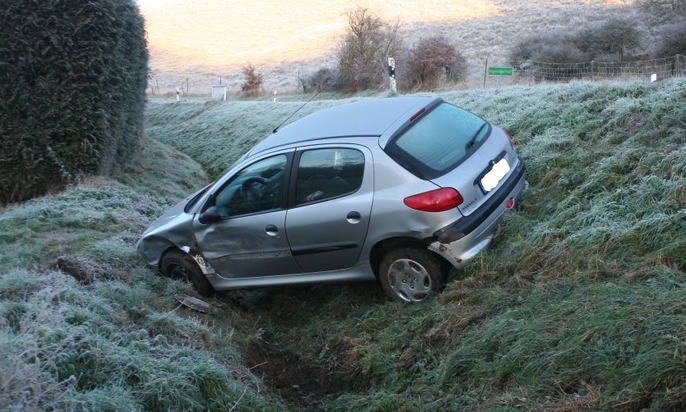 Glück hatte ein Fahrzeugführer am Samstagmorgen, als er mit seinem Pkw, nahe Hefersweiler, von der Fahrbahn abkam. Nachdem er, aus ungeklärter Ursache, zunächst am Hang abseits der Straße entlang fuhr, steuerte er sein Fahrzeug auf die Fahrbahn zurück. Er querte die Gegenfahrbahn und rutschte in die abschüssige Böschung, wo er schließlich zum Stehen kam. Glücklicherweise wurde hierbei niemand verletzt, es blieb lediglich beim Blechschaden.