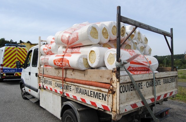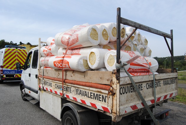 Am Mittwoch kontrollierten Beamte der Zentralen Verkehrsdienste der Polizeidirektion Kaiserslautern einen auffällig beladenen Klein-Lkw aus Osteuropa. Die Ladung, bestehend aus Dämmmaterial war nicht ordnungsgemäß gesichert und drohte während der Fahrt zu verrutschen oder herabzufallen. Dem Fahrer wurde bis zur Nachsicherung seiner Ladung die Weiterfahrt untersagt. Gegen ihn und den Halter des Kleintransporters wurden Bußgeldverfahren eingeleitet.