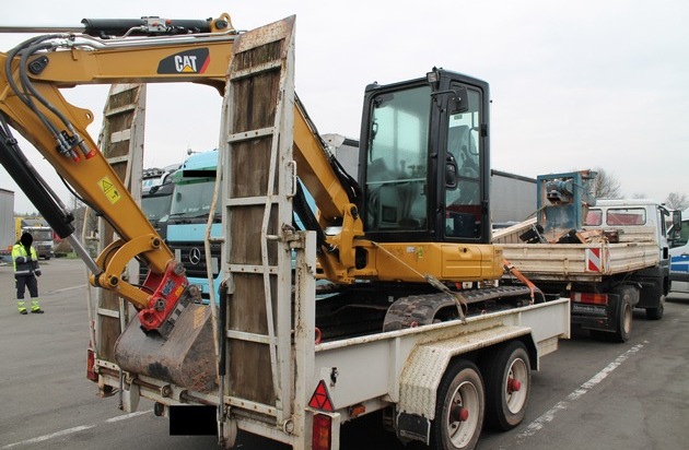 Am Montagmorgen kontrollierten Beamte der Schwerverkehrsüberwachung der Zentralen Verkehrsdienste auf dem Autohof Ramstein einen Lkw mit Anhänger. Während der Kontrolle stellten sie fest, dass die Fahrzeugkombination erhebliche Mängel aufwies. Ein Bremsschlauch war eingerissen und musste ersetzt werden. Die Ladung des Anhängers, ein Minibagger, war nur unzureichend gesichert. Die auf der Ladefläche des Lkw mitgeführten Gegenstände wurden ebenfalls ohne jegliche Sicherung befördert. Weiterhin war der 45 jährige Fahrer nicht im Besitz der für den Lkw mit Anhänger erforderlichen Fahrerlaubnis. Gegen ihn und den Fahrzeughalter wurden Strafverfahren eingeleitet. Die Weiterfahrt wurde untersagt.
