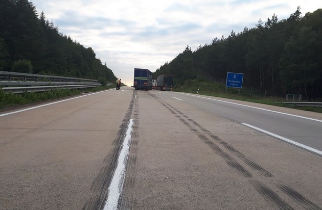 Am Montagabend kam ein Lastwagen auf der A6 wegen einer Fahrzeugpanne direkt hinter einer Kuppe zum Stehen und sorgte damit für eine erhebliche Gefahrenstelle. Der Lastwagen war zwischen Wattenheim und Enkenbach-Alsenborn in Richtung Saarbrücken unterwegs, als plötzlich ein Reifen platzte. Als wäre das nicht schon schlimm genug, wurde durch den zerfetzten Reifen auch noch die Bremsleitung beschädigt, was zum sofortigen Blockieren der Bremsanlage führte. Direkt hinter einer Kuppe im Kurvenbereich kam der LKW mitten auf der Fahrbahn zum Stehen. Gefährlicher geht es kaum für den nachfolgenden Verkehr. Zum Glück waren ausschließlich umsichtige Fahrer unterwegs, so dass es zu keinen Unfällen kam. Bis der Lkw abgeschleppt werden konnte, wurde die Gefahrenstelle von der Autobahnmeisterei Wattenheim abgesichert.