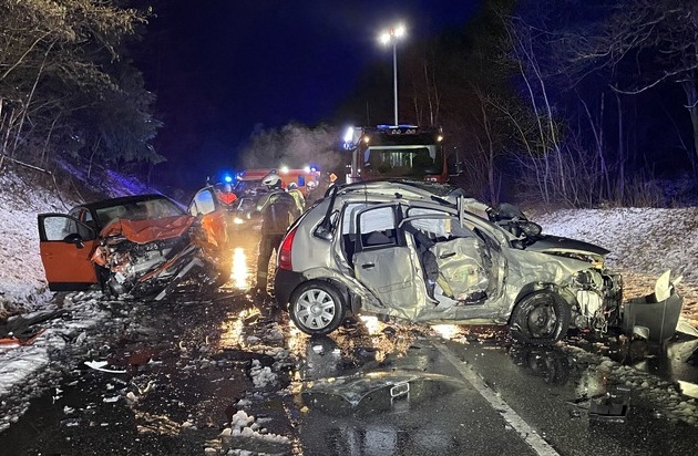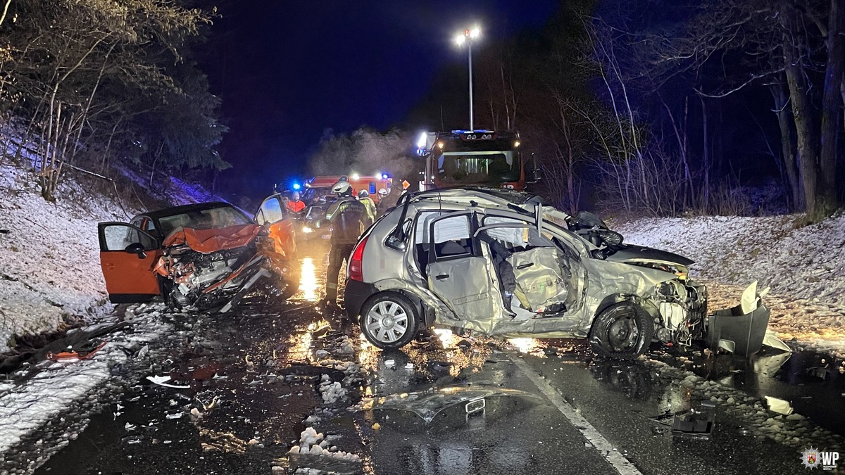 Nach dem aktuellen Ermittlungsstand geriet ein 19-jähriger Fahrer mit seinem Citroën aus bisher ungeklärter Ursache auf die Gegenfahrbahn. Dort kollidierte er frontal mit einem entgegenkommenden Opel. Der 19-Jährige und ein 53-jähriger Insasse des Opel erlitten schwere Verletzungen. Der Fahrer des Opel wurde leicht verletzt. Die Verletzten wurden durch Rettungskräfte versorgt und in ein Krankenhaus gebracht.
