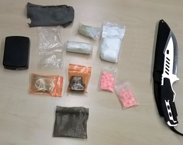 Der bereits einschlägig bekannte Mann war im Rahmen einer Streife am frühen Donnerstagabend in der Innenstadt aufgefallen. Als die Beamten ihn kontrollieren wollten, versuchte der Tatverdächtige noch etwas "loszuwerden". Wie sich heraus stellte, handelte es sich bei dem weggeworfenen Gegenstand um einen Beutel mit Amphetamin (rund 80 Gramm). Bei der weiteren Durchsuchung des 36-Jährigen und seiner Sachen wurden darüber hinaus noch Haschisch, Ecstasy und Marihuana sowie ein vierstelliger Bargeld-Betrag gefunden. Außerdem hatte er im Hosenbund ein Messer mit einer langen Klinge. Drogen, Geld und Waffe wurden sichergestellt und der Mann über Nacht bis zu seiner Vorführung in Gewahrsam genommen.