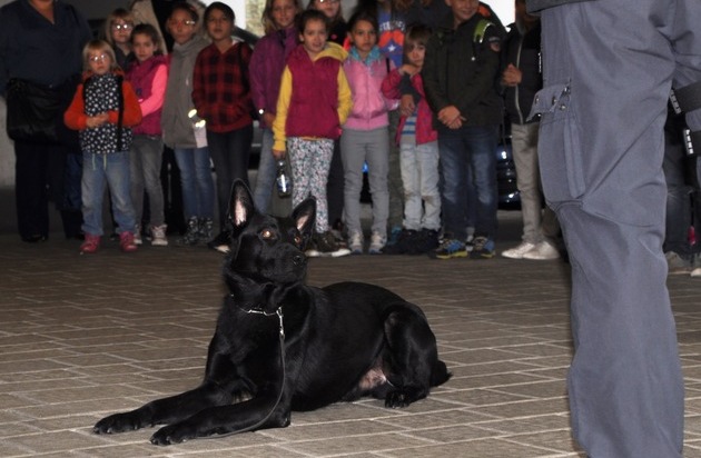 Highlight des Tages dürfte der Diensthund Axel gewesen sein. Der zweijährige Schäferhund und sein Herrchen, Rouven Stretz, zeigten den Kids was ein Polizeihund so drauf hat. "Sitz" und "Platz" waren für den jungen Hund dabei noch die leichtesten Übungen. Schwieriger wurde es, als der Rauschgiftspürhund ein vermeintliches Drogenversteck erschnüffeln sollte. Doch auch da ließ sich Axel nicht lumpen und stellte souverän sein Können unter Beweis.