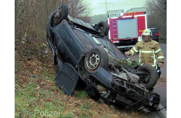 Der Unfallfahrer blieb glücklicherweise unverletzt und konnte sich selbst aus dem Fahrzeug befreien. Der VW Golf wurde allerdings so stark beschädigt, dass er nicht mehr fahrbereit war und abgeschleppt werden musste. Der Schaden wird auf 4.000 Euro geschätzt, was einem wirtschaftlichen Totalschaden entsprechen dürfte.