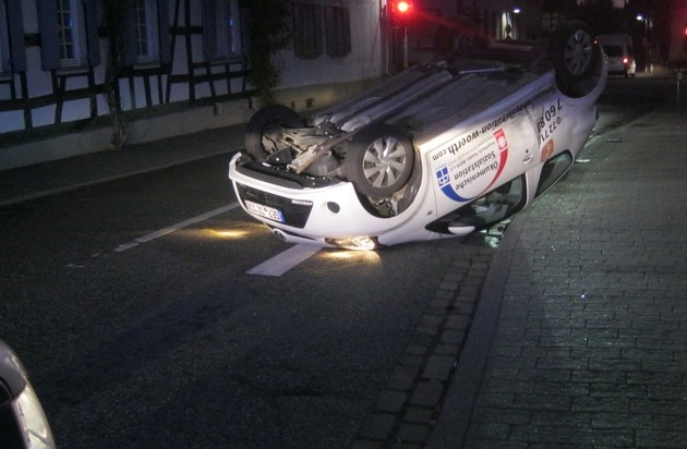 Kandel; Am 16.11.2015 befuhr um 06:00 Uhr ein 42-jähriger Verkehrsteilnehmer mit seinem PKW die Markstraße in Richtung Landauer Straße. Beim Einfahren in die Kreuzung missachtete der Fahrer das Rotlicht der Lichtzeichenanlage. Im Kreuzungsbereich kam es zum Zusammenstoß mit dem PKW einer 21-Jährigen die in Richtung Minderslachen fuhr. Durch den Zusammenstoß wurde der Klein-PKW der Fahrerin auf die Seite gelegt. Hierbei verletzte sich die 21-Jährige leicht und musste durch das DRK versorgt werden.