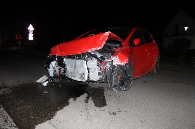 Birkweiler: 17.02.2016, 04.45 Uhr An Hauswand gelandet In der Nacht von Dienstag auf Mittwoch fuhr ein 18 jähriger mit einem Pkw KIA von Siebeldingen in Richtung Birkweiler. Vermutlich unter Alkohol- und Drogeneinfluss stehend, verriss er in der Weinstraße das Lenkrad, kam nach links von der Fahrbahn ab und stieß gegen eine Hauswand, nachdem er durch den Vorgarten des Anwesens schlitterte. Das Haus wurde beschädigt und am Auto entstand ein Totalschaden (siehe Bild). Der Verursacher wurde vorsorglich ins Krankenhaus verbracht, wo ihm auch eine Blutprobe entnommen wurde, zur Feststellung seiner Fahrtüchtigkeit.