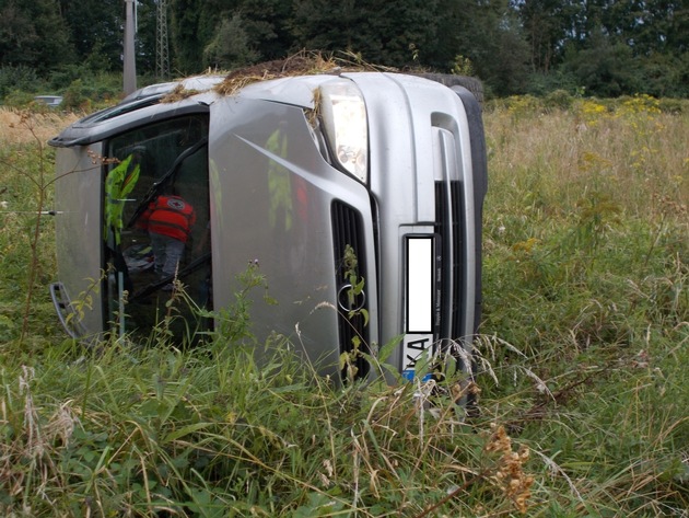 Wörth; Am 04.09.2016 befuhr um 17:00 Uhr ein PKW die BAB 65 von Landau nach Karlsruhe. Der 20-jährige Fahrer wollte an der AS Hagenbach von der BAB abfahren. Auf Grund nicht angepasster Geschwindigkeit kam der Fahrer in der Kurve von der Fahrbahn ab. Das Fahrzeug überschlug sich und blieb anschließend im Grünstreifen liegen. Die beiden Insassen wurden glücklicherweise nur leicht verletzt. Es entstand ein Sachschaden von ca. 10.000EUR.