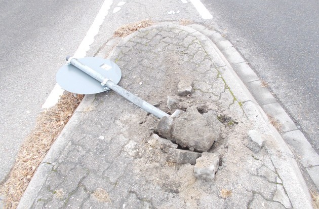Wörth; Der Fahrer eines Sattelzuges befuhr am 06.12.2016 um 11:08 Uhr die Bahnhofstraße und wollte in die Hanns-Martin-Schleyer Straße abbiegen. Hierbei kam er mit seinem Gespann von der Fahrbahn ab und beschädigte ein Verkehrszeichen auf einer Verkehrsinsel. Der Fahrer setzte die Fahrt jedoch ohne sich um den Schaden zu kümmern fort. Im Rahmen der Fahndung konnte der Verursacher im Bereich des Mercedes Werkes festgestellt werden. Ihn erwartet nun eine Strafanzeige.