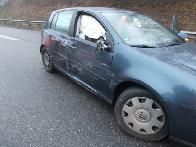 Am 15.12.2016, gegen 07:40 Uhr, musste eine 40jährige Landauerin mit ihrem Pkw verkehrsbedingt auf dem Beschleunigungsstreifen der A65, Auffahrt Landau Süd, in Fahrtrichtung Karlsruhe, halten. Ein 39jähriger Landauer erkannte dies zu spät und fuhr mit seinem Pkw auf den Pkw der Landauerin auf. Er lenkte noch nach links, beschädigte dabei trotzdem seine gesamte rechte Fahrzeugseite und drehte sich um 180°. Er kam auf der rechten Fahrspur zum Stehen. Beide Pkw waren noch bedingt fahrbereit, und konnten die Unfallstelle selbstständig verlassen. Die Gesamtschadenshöhe dürfte ca. 12.000,-EUR betragen. Die rechte Fahrspur war während der Unfallaufnahme für ca. 30min gesperrt, die Absicherung übernahm die Straßenmeisterei Kandel. Es kam im morgendlichen Berufsverkehr zu einem ca. 4km langen Rückstau bis zum Landauer Trog.