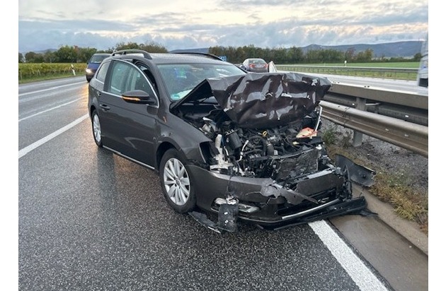 Gestern Morgen, 21.10.2025, gegen 07.35 Uhr, befuhr ein 18-jähriger VW-Passat-Fahrer die A65 in Richtung Ludwigshafen auf dem linken Fahrstreifen. Ca. 1000 Meter vor der Abfahrt Haßloch fuhr er hinter einer 24-jährigen VW-Polo-Fahrerin, die verkehrsbedingt abbremsen musste. Aufgrund regennasser Fahrbahn konnte der Passat-Fahrer nicht mehr vollständig abbremsen und fuhr auf den Polo auf. Hierdurch drehte sich der Polo und blieb mittig auf der Fahrbahn stehen. Die Front des Passat wurde durch den Aufprall erheblich beschädigt. Es entstand ein Gesamtschaden von ca. 50.000 Euro. Bis zur Bergung der Fahrzeuge durch einen Abschleppdienst wurde die Fahrbahn voll gesperrt. Die beiden Unfallbeteiligten kamen vorsorglich zur Untersuchung in ein Krankenhaus.