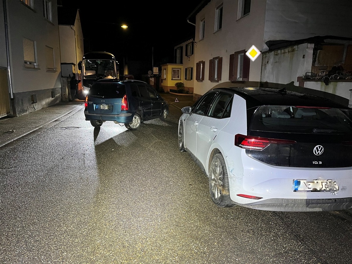 Am Mittwoch, 11. Februar befuhr ein 59-jähriger Mann mit seinem Mazda die Hauptstraße in Schweighofen in Richtung Kapsweyer. Vermutlich aufgrund seiner Alkoholisierung übersah er ein ordnungsgemäß geparktes Auto und fuhr auf dieses auf. Eine im Rahmen der Unfallaufnahme durchgeführte Atemalkoholmessung ergab einen Wert von 2,57 Promille. Dem Fahrer wurde eine Blutprobe entnommen und der Führerschein sichergestellt. Gegen den Mann wird ein Ermittlungsverfahren wegen Straßenverkehrsgefährdung eingeleitet. Der Gesamtsachschaden beläuft sich auf circa 12.000 Euro.