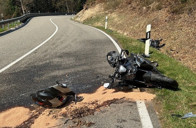 Um 16:50 Uhr ereignete sich der nächste Verkehrsunfall mit zwei beteiligten Motorradfahrern. Ein 22-jähriger Motorradfahrer aus dem Raum Neustadt verlor in einer Rechtskurve aufgrund eines Fahrfehlers die Kontrolle über sein Kraftrad. Er kam zu Sturz, sein Motorrad rutschte in den Gegenverkehr und brachte einen entgegenkommenden Motorradfahrer zu Fall. Auch bei diesem Verkehrsunfall erlitten die beiden Fahrer glücklicherweise nur leichte Verletzungen.