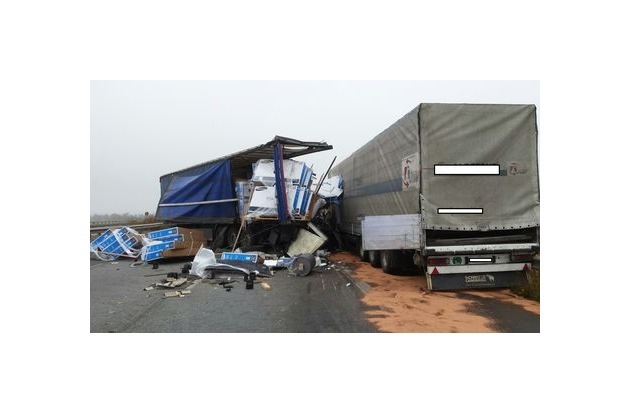 Schwerer Lkw-Unfall auf der A6 Ein 43-jähriger Lkw-Fahrer aus Kroation fuhr gegen 11:12 h auf das Stauende auf, das sich infolge der Bergungsarbeiten an einer Unfallstelle in der vergangenen Nacht auf der A6 zwischen der AS Grünstadt und der AS Wattenheim gebildet hatte. Hierdurch wurden 3 weitere Lkw zusammen geschoben. Ein links vorbei fahrender Pkw wurde von einem der Lkw ebenfalls noch gestreift. Somit waren insgesamt 4 Lkw und ein Pkw beteiligt. Der kroatische Lkw-Fahrer wurde in seinem Führerhaus eingeklemmt und erlitt schwerste Verletzungen. Der eingesetzte Notarzt konnte nach der Bergung nur noch den Tod des Fahrers feststellen. Eine weitere Person wurde leicht verletzt. Der Sachschaden an den vier Lkw und deren Ladung, sowie an dem Pkw wird derzeit auf rund 500 000 Euro geschätzt. An der Unfallstelle wurde ein Unfallsachverständiger zu den Ermittlungen hinzugezogen. Die Ermittlungstätigkeiten sowie die Bergungs- und Räumungsarbeiten werden noch mehrere Stunden in Anspruch nehmen. Für diesen Zeitraum wird die A6 gesperrt bleiben. Zurzeit besteht die Sperrung ab dem Autobahnkreuz Frankenthal. Der Verkehr vor der Unfallstelle wird am AS Grünstadt abgeleitet. Hier ist noch mit andauernden Verkehrsbehinderungen zu rechnen. Das Autobahnkreuz Frankenthal in Richtung A6 sollte von Ortskundigen gemieden werden.