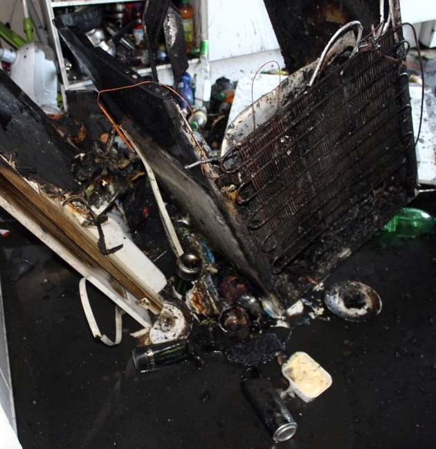 Gestern, Donnerstag, 06.07.2017, gg. 10.45 Uhr, geriet ein Kühlschrank in einem Einfamilienhaus in der Hauptstraße in Kleinkarlbach in Brand und sorgte für einen Sachschaden in Höhe von ca. 20.000.- Euro. Das Inventar der Küche ist größtenteils verschmort, der Rest stark verrußt. Glücklicherweise gab es keine Verletzte.