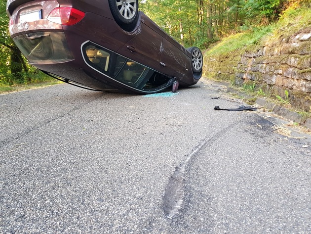 Ein 39-jähriger Bad Dürkheimer befuhr am Montagabend den Luitpoldweg von der Limburg kommend. Aus nicht geklärten Gründen kam das Fahrzeug nach rechts von der Fahrbahn ab, kollidierte mit dem Randstein und der Begrenzungsmauer und überschlug sich. Der Fahrzeugführer wurde leicht verletzt und vorsorglich ins Krankenhaus verbracht. Das auf dem Dach liegende Fahrzeug musste durch eine Spezialfirma geborgen werden.