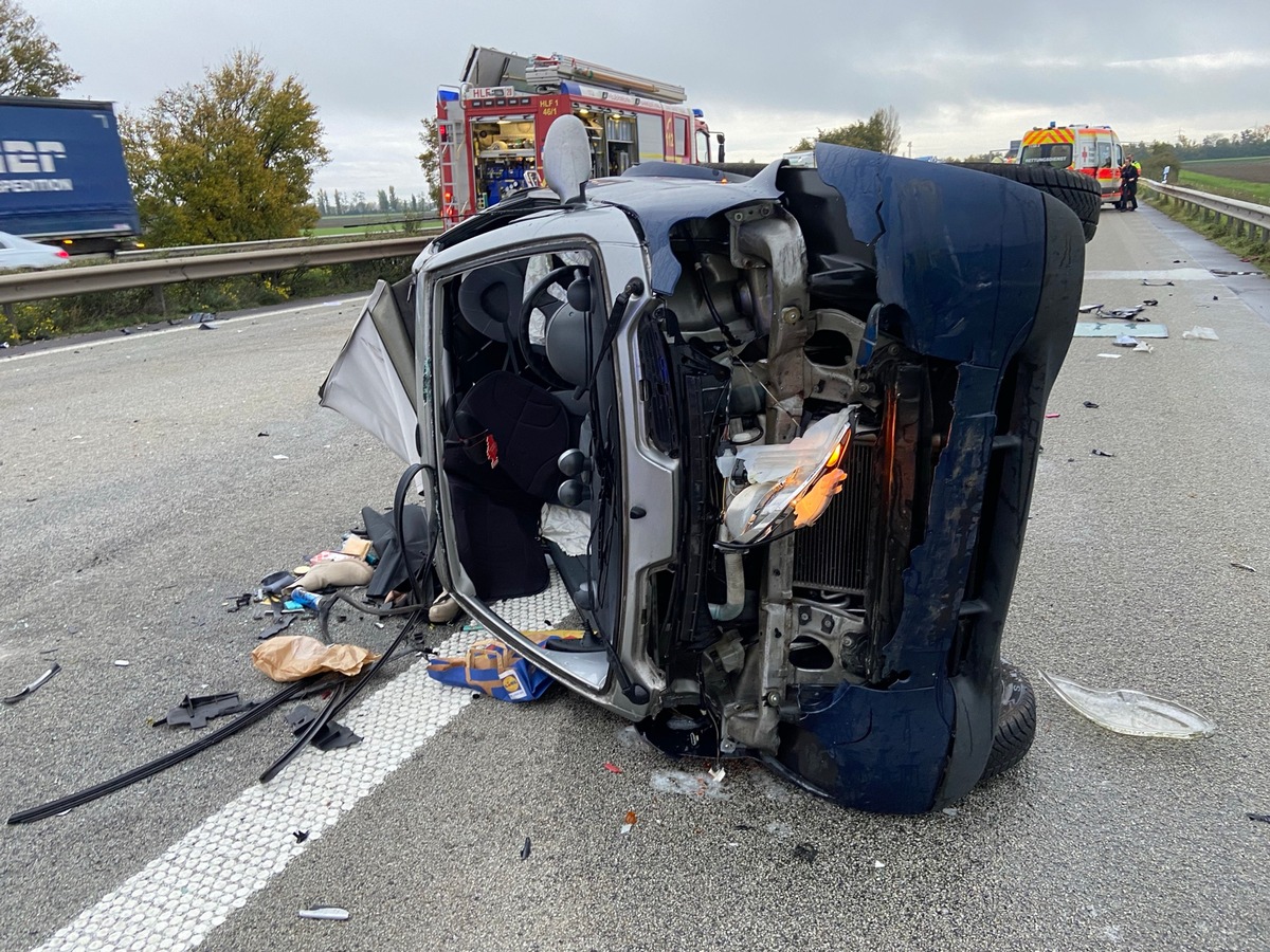 Eine 20-jährige Hyundai-Fahrerin, eine 44-jährige Smart-Fahrerin und ein 61-jähriger Opel-Fahrer befuhren nacheinander die A61 in Fahrtrichtung Speyer auf dem linken von zwei Fahrstreifen. Nach derzeitigen Erkenntnissen fuhr der 61-jährige aufgrund mangelnden Sicherheitsabstands auf die verkehrsbedingt abbremsende 44-jährige Smart-Fahrerin auf. Durch die Kollision wurde der Smart gedreht, überschlug sich seitlich über das Dach und kam auf der Beifahrerseite zum Liegen. Hierbei wurde der vorausfahrende Hyundai ebenfalls beschädigt. Die 44-jährige Smart-Fahrerin wurde durch die Kollision aus dem "Smart Fortwo Cabrio" geschleudert und erlitt schwere Verletzungen. Die 20-jährige Hyundai-Fahrerin erlitt durch den Aufprall leichte Verletzungen. Beide Personen wurden zur weiteren Behandlung in umliegende Krankenhäuser gebracht. Lebensgefahr bestand zu keinem Zeitpunkt. Alle drei Fahrzeuge wurden abgeschleppt. Der Sachschaden wird auf etwa 25.000 Euro geschätzt.