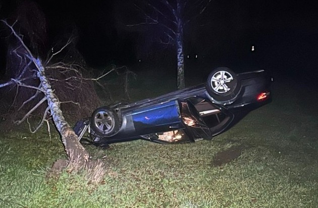 Am Mittwoch (26.11.2025), kurz nach Mitternacht, wurde der Polizei gemeldet, dass an der B39 bei Neustadt an der Weinstraße ein Pkw von der Straße abkam und mit einem Baum kollidierte. In Höhe des Ortsteiles Geinsheim kam die Fahrzeugführerin eines Mercedes in einer Linkskurve von der Fahrbahn ab und kollidierte mit einem Baum, welcher neben der Fahrbahn stand. Durch die Wucht des Aufpralls überschlug sich der Mercedes und kam auf dem Dach zum Liegen. Die beiden Fahrzeuginsassinnen wurden leicht verletzt. Da es an dem verunfallten Fahrzeug zu einer Rauchentwicklung kam, wurden durch die Feuerwehr Löscharbeiten durchgeführt.